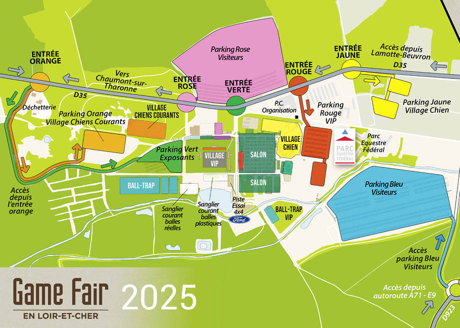 Le compte à rebours est lancé ! À seulement deux jours de l’ouverture du GAME FAIR 2025, toute l’équipe de l’ANCGE est heureuse de vous transmettre ci-joint le plan simplifié du Salon. Vous y trouverez l’emplacement des différentes portes, parkings et animations pour vous permettre de préparer au mieux votre visite.